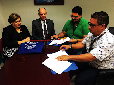 El equipo de profesionales de Med Centro acudió a las escuelas para la firma del acuerdo colaborativo. Durante la reunión con los directores de las escuelas se les informó las metas y el alcance clínico del programa Estudiante Saludable. Se les indicó que en el nuevo semestre escolar se espera poder impactar al 100 por ciento de la matrícula de cada escuela. Se destacó además la importancia del “wellness champion” que será la persona escogida por el director de la escuela para ser el enlace entre el plantel y Med Centro y así garantizar que los estudiantes conozcan y se beneficien de los servicios cada vez que la unidad móvil visite la escuela.